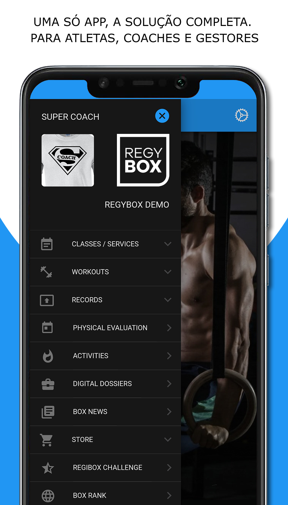 At the level of Members. Can view wods / classes, mark and unmark presence, interact with other members and coaches, use as diary of wods and personal records, etc.